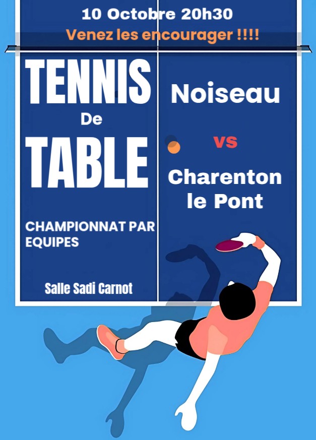 Le vendredi 10 octobre 2025 à 20h30, la Salle Sadi Carnot accueillera une belle affiche du championnat par équipe masculin : le Club de Noiseau affrontera le Club de Charenton-le-Pont.